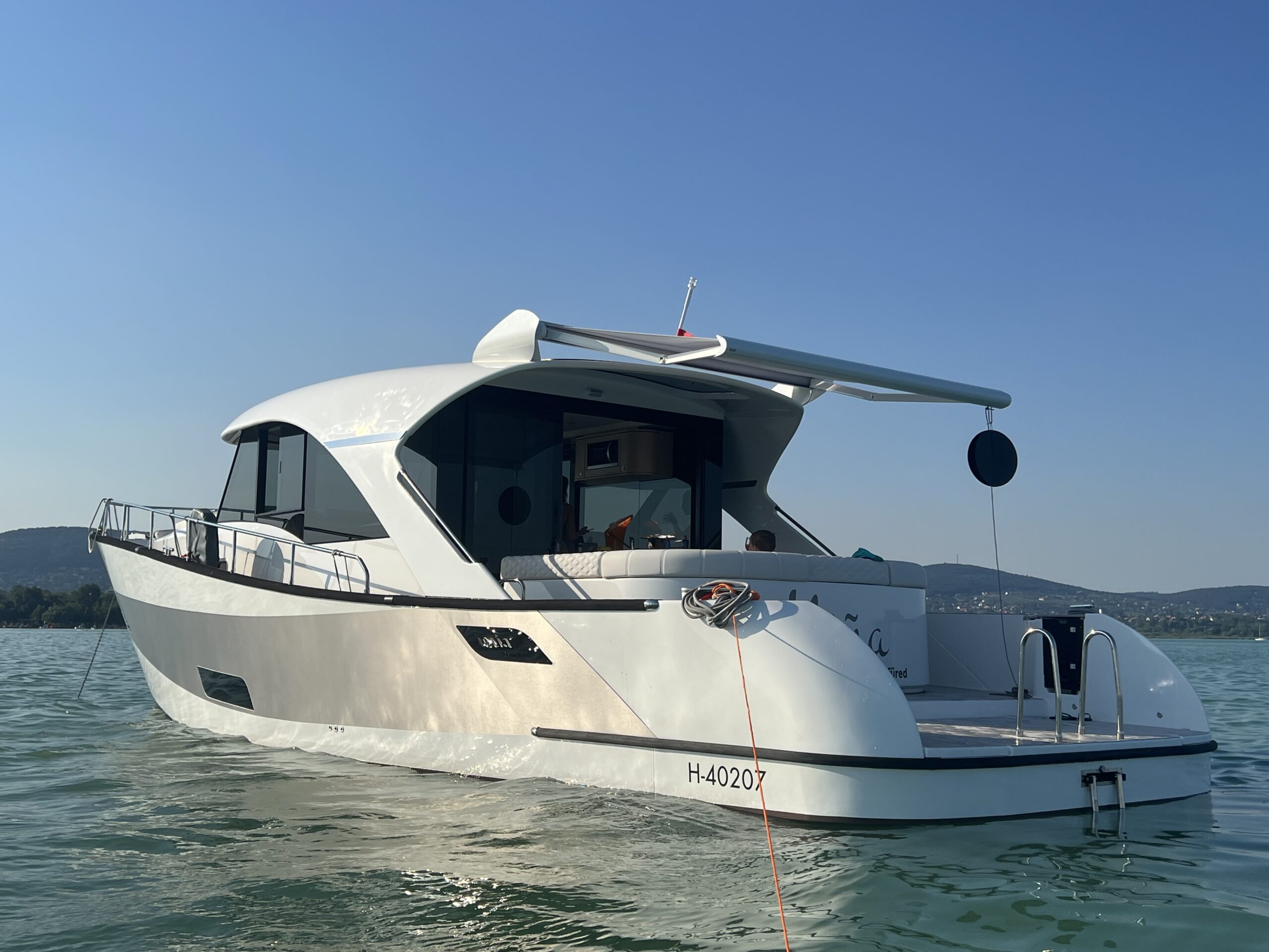 A Wia 435 Hard Top egy modern, elegáns és rendkívül tágas elektromos yacht, amely a csendes, környezetbarát hajózás élményét kínálja. Kiváló választás családi programokhoz, baráti összejövetelekhez vagy exkluzív alkalmakhoz a Balatonon. Csak kapitánnyal bérelhető.